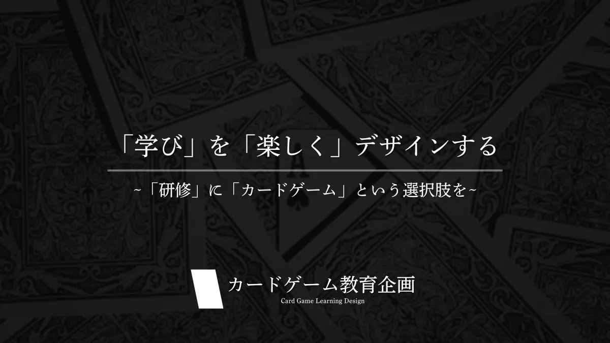 私たちは、単なるゲーム制作会社ではありません。 「企業の研修担当歴10年以上」のキャリアを持つ教育のプロと、「カードゲーム歴10年以上・最優秀インストラクター賞受賞」の実績を持つゲームの専門家が融合したチームです。 教育現場のリアルな課題感と、ゲームの熱狂を生むメカニクス。この2つを掛け合わせ、「楽しくて、成果が出る」唯一無二の研修体験をデザインします。