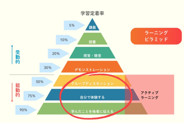 講義形式の研修は、聞いた内容のわずか5%しか記憶に残りません。参加者の多くが「いい話だった」で終わり、翌日の業務に繋がりません 。